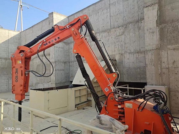 1. 固定式液壓碎石機(jī)安裝在砂石骨料鄂破口或入料口處,高效破碎堵塞石塊,提高了砂石骨料的生產(chǎn)效率,遙控操作讓人員遠(yuǎn)離了危險(xiǎn)區(qū)域,降低了人工成本。