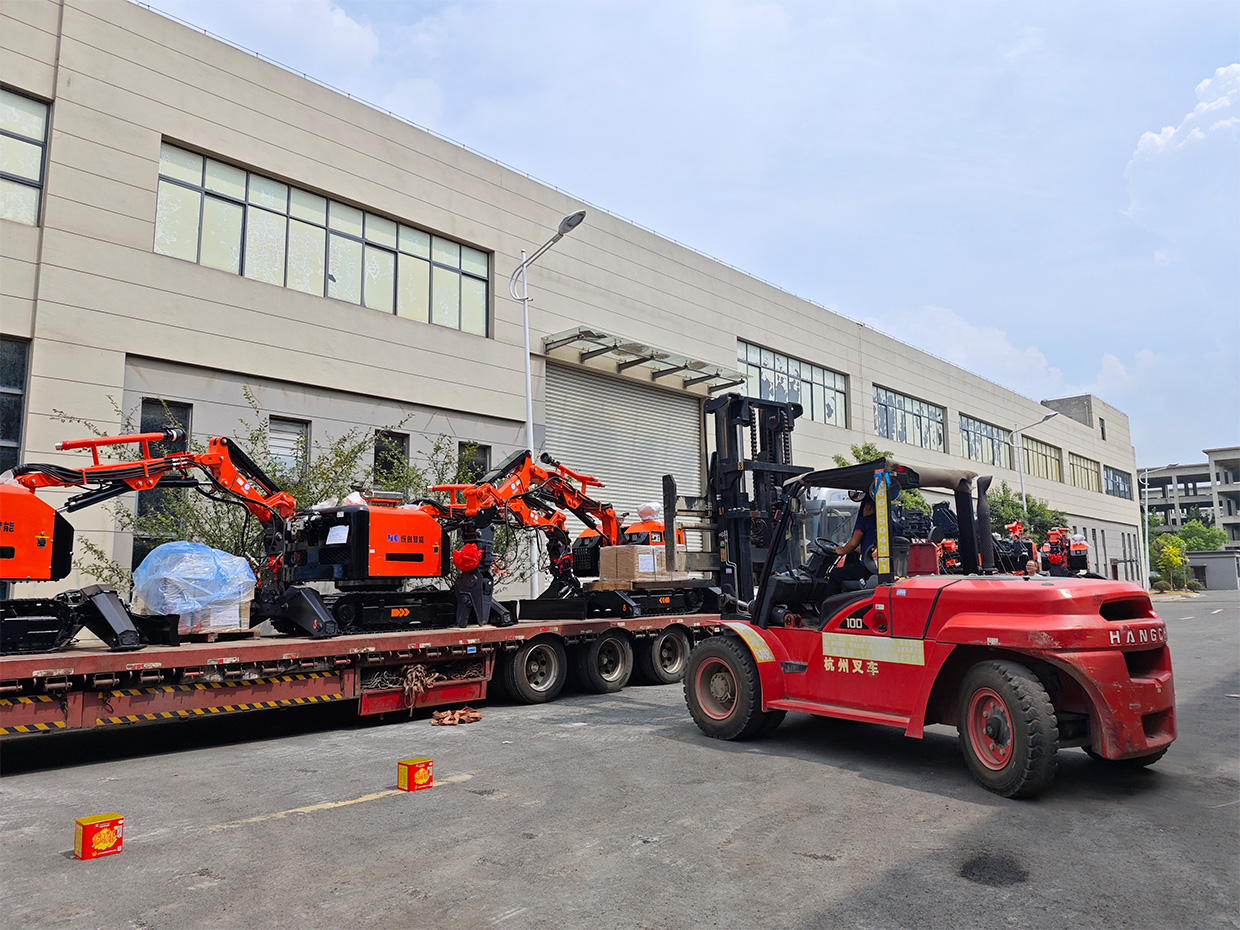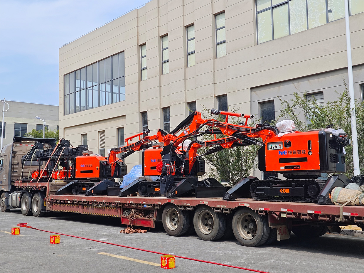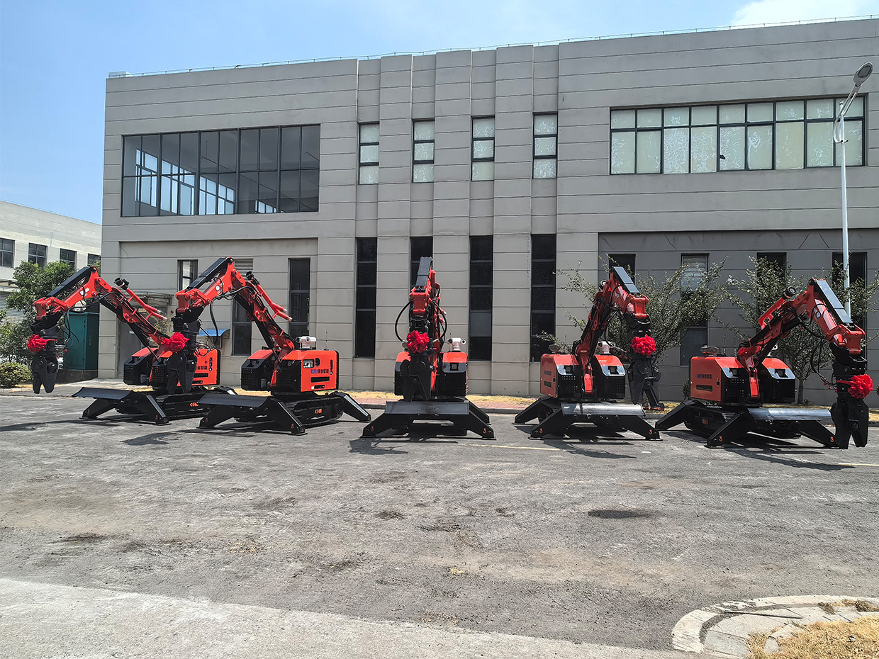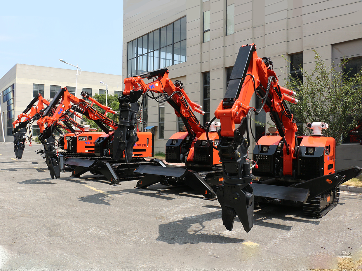 RXR-JM330D-HC型多功能工程機器人是國內(nèi)自主研發(fā)的一種柴油驅(qū)動,用于高危環(huán)境下具有精細化作業(yè)能力的新型高科技裝備。該設(shè)備采用小型履帶運動底盤作為載體,將負載反饋式電液比例系統(tǒng)、基于 CAN 總線的數(shù)字式雙向有線遙控系統(tǒng)以及多參數(shù)傳感系統(tǒng)有機融合,可快速配置液壓錘、挖斗、抓取器、液壓剪等不用作業(yè)屬具,在高溫、高粉塵、易坍塌的危險區(qū)域中靈活地進行全方位遙控的破碎、挖掘、抓取、搬運等多功能作業(yè)。主要應(yīng)用領(lǐng)域有建筑拆除、回轉(zhuǎn)窯維修、礦山、隧道施工、冶金爐窯維修、核工業(yè)。
